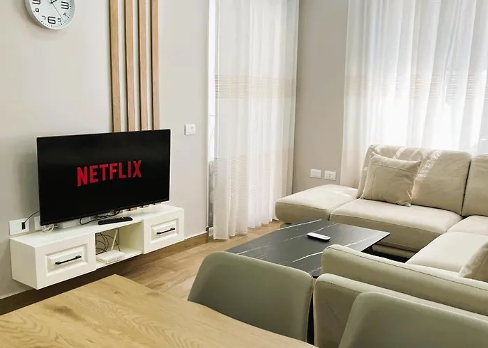 De Kodra e Robit heuvel bevindt zich op 20 minuten wandelafstand van dit 1-badkamer appartement. Het Golemit strand bevindt zich niet ver van dit appartement van 57 m².